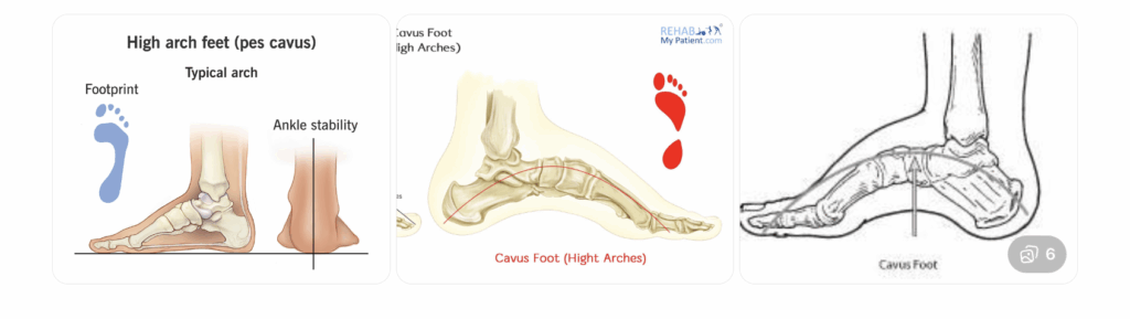 High arches are elevated and rigid, often leading to under-pronation (supination) and lateral loading.