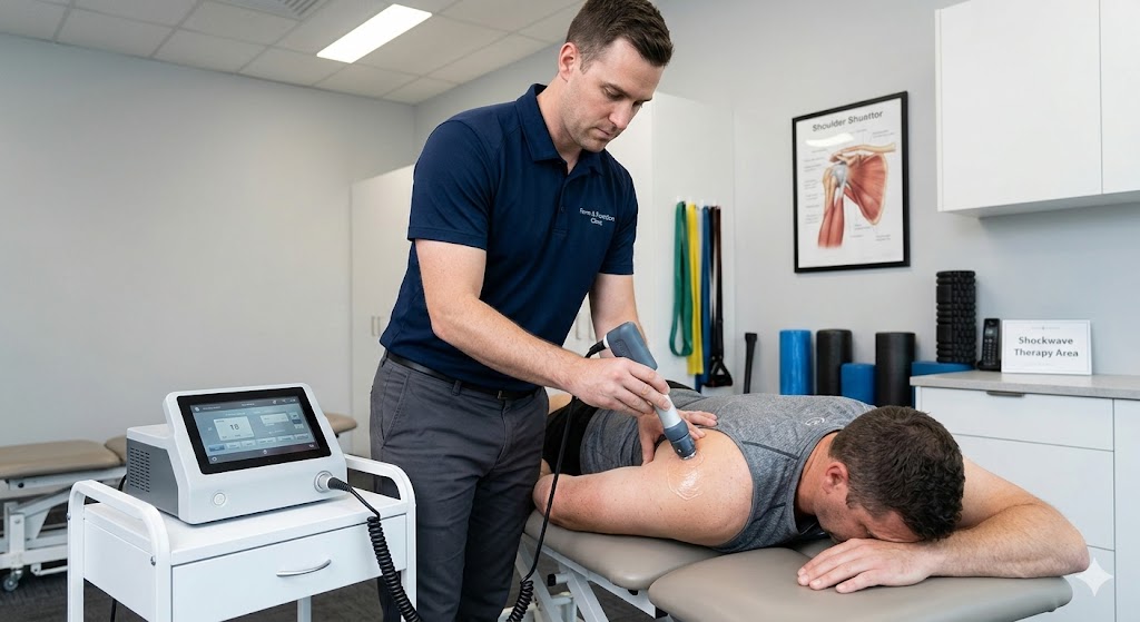Shockwave therapy is a modern, non-invasive treatment that is highly effective for chronic pain and soft tissue injuries. At Form & Function Markham, we utilize this advanced technology to accelerate your body’s natural healing process. These high-energy acoustic waves penetrate the skin to stimulate blood circulation, enhance cellular metabolism, and help damaged tissues recover faster.
